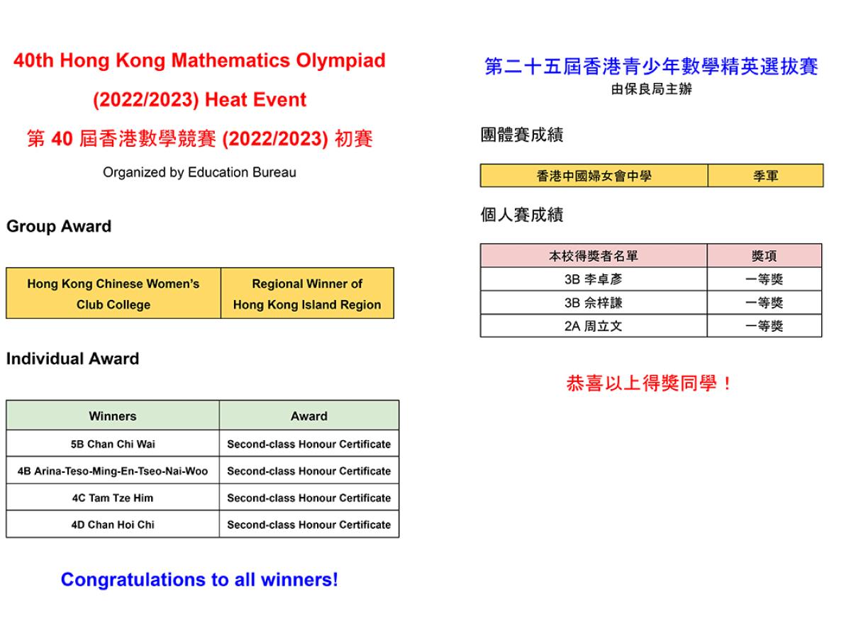 22/03/2023Pleasing Results in Mathematics Competitions -