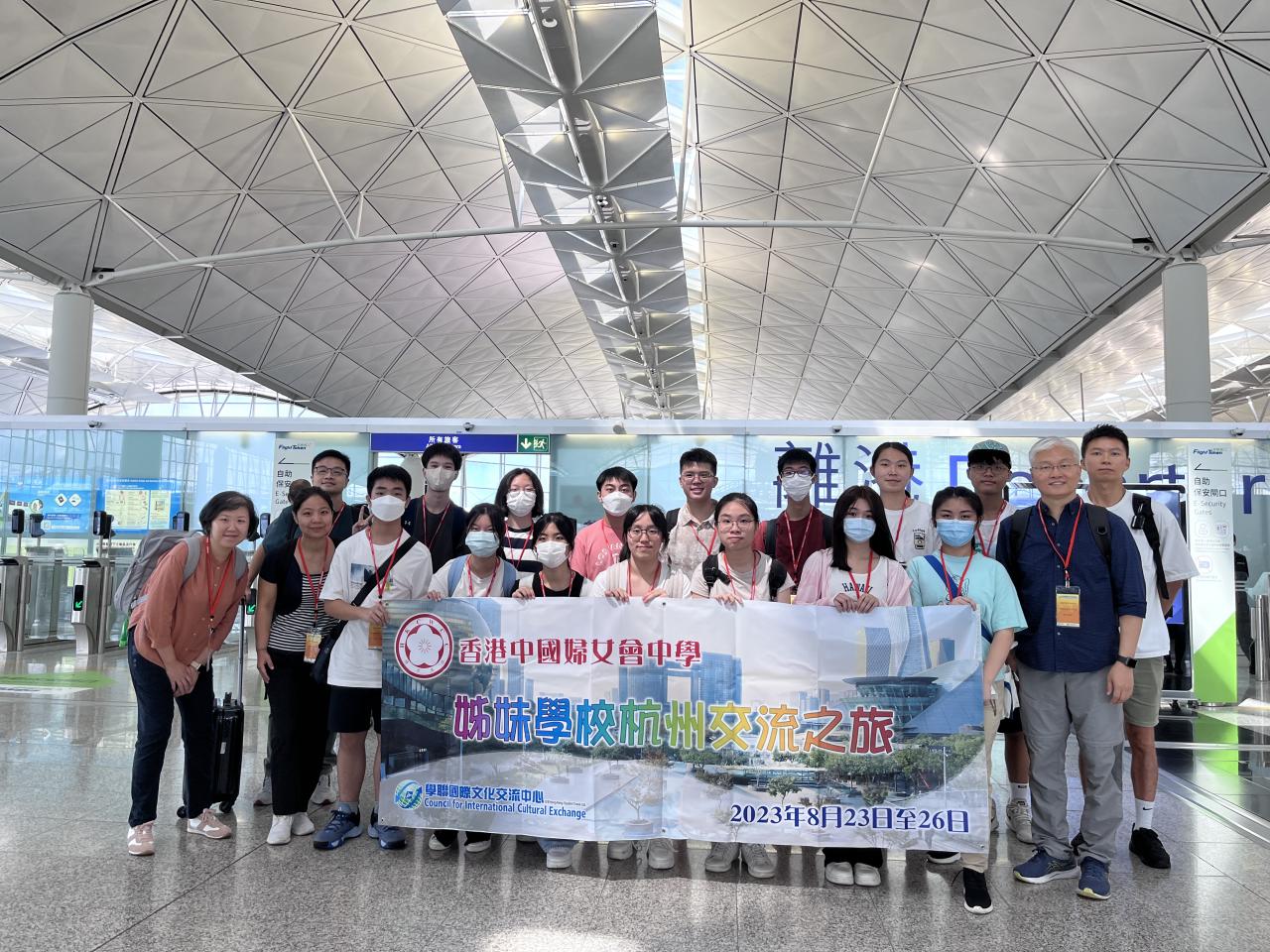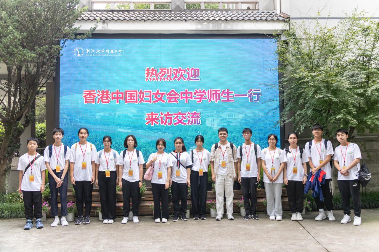 於2023年8月23至26日期間,校長與4名老師及14名學生前往杭州與浙江大學附屬中學師生進行交流,並由兩校校長進行締結姊妹學校簽約儀式。位於西湖旁邊的浙江大學附屬中學為一所極受歡迎的一級重點中學,學校現有玉泉和丁蘭兩個校區,設備先進。是次參訪喜蒙該校校長及老師們的盛情招待,帶領我校師生參觀該校優美的校園及享用了豐富的午膳,並特意安排兩校學生一同進行學習和交流活動,包括上課、進行軍訓示範、繪畫及排球活動等,讓本校學生能體驗當地學生的學習及生活。