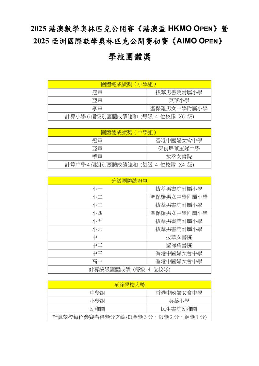 - 2025 港澳數學奧林匹克公開賽《港澳盃 HKMO OPEN》暨 2025 亞洲國際數學奧林匹克公開賽初賽《AIMO OPEN》