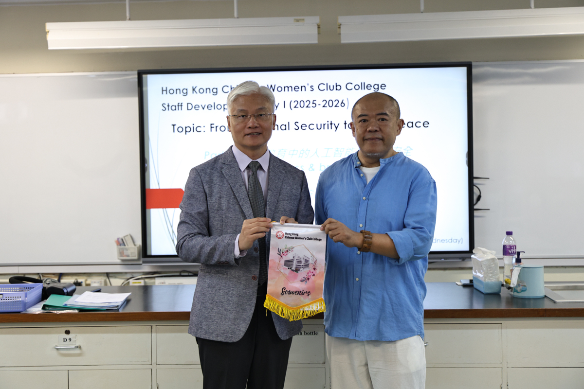 On 22 October 2025, the College organized the Staff Development Day (I) under the theme “From National Security to Inner Peace.” The programme featured a series of enriching sessions, beginning with a talk on “Artificial Intelligence and Data Security in National Education” by Mr. Lam Lok from the HKFEW. This was followed by a rejuvenating Mindfulness and Breathing Exercise led by Mr. Michael R. Su from the HKUEP. In the final session, teachers enjoyed hands-on experience of Traditional Chinese Acupressure Massage and Ba Duan Jin exercises, promoting both physical relaxation and inner harmony.