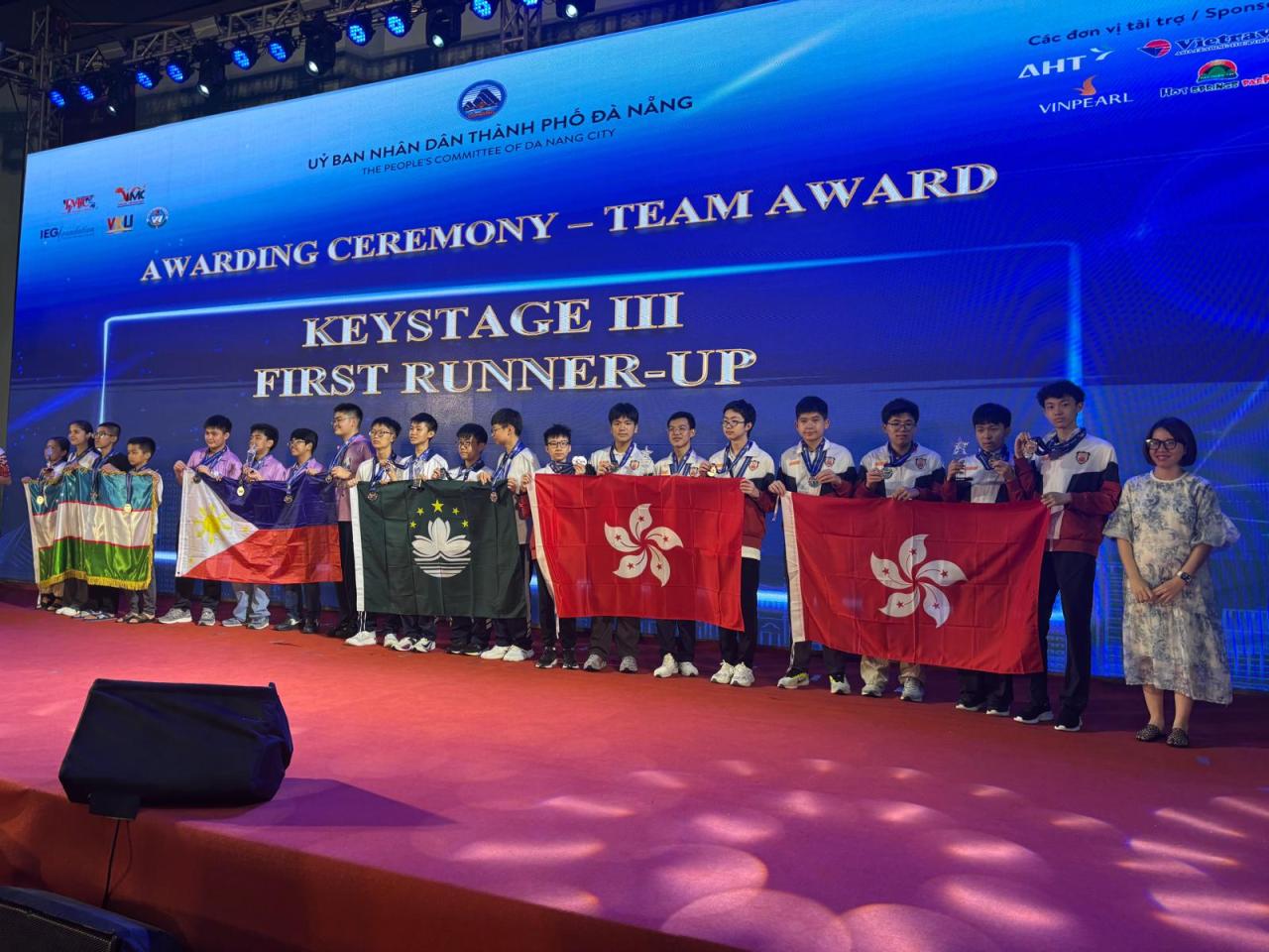 From 14-19 August, 2025, our students, 3B Chan Ka Yee and 4B Yeung Shing Fai represented 黑料官网to participate in the Vietnam International Mathematics Competition 2025 (VIMC 2025). We are proud to share that they were awarded the First Runner-Up (Group Award and Team Award). Chan Ka Yee also received an Individual Silver Medal and Yeung Shing Fai received an Individual Merit award.